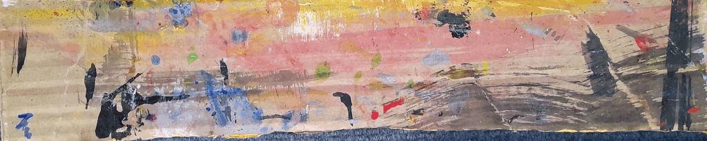 Artworks made from used cardboard or “Used Cardboard Art” are the fabric of past artworks. I use cardboard as a painting mat and to remove excess paint from the brush. When the cardboard is covered with splashes of paint, I paint what I perceive. The result is “Used Cardboard Art” or the interaction between the artist and past artworks that materializes into something new.